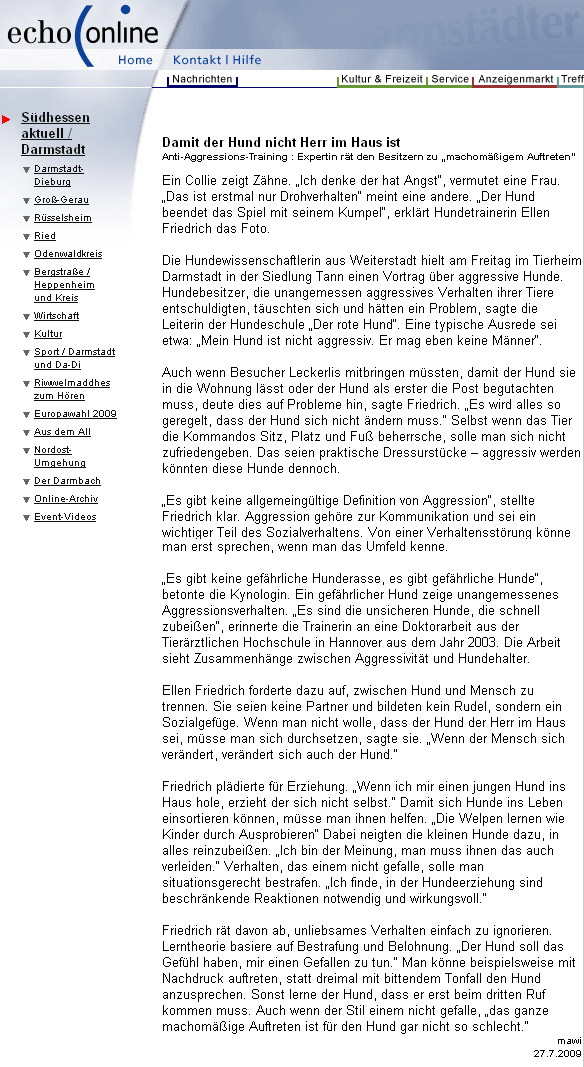 Umgang mit aggressivem Hundeverhalten - Februar '09/Juli '09/Juli '10